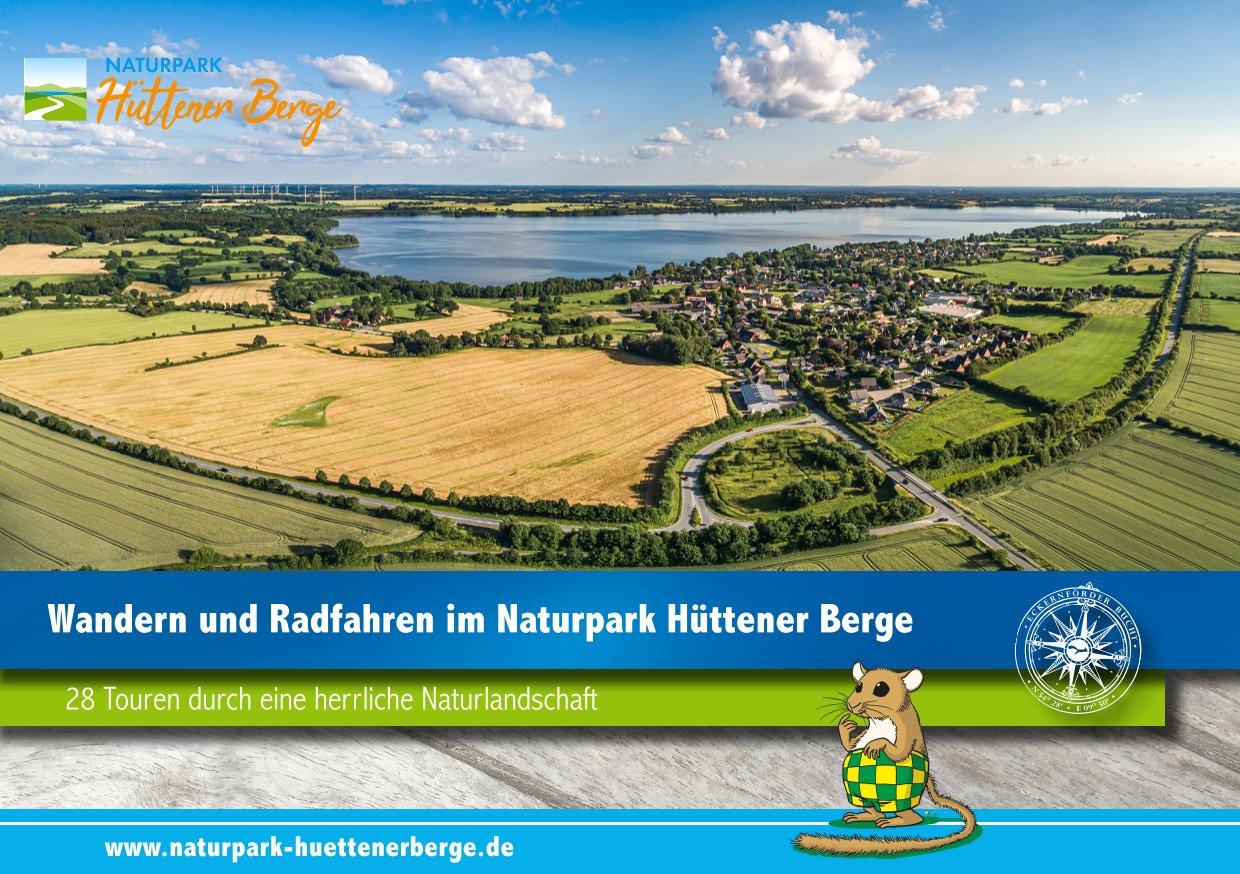 Drei Printprodukte des Naturparks Hüttener Berge - die umfangreiche Routenbroschüre "Wandern und Radfahren im Naturpark Hüttener Berge", der Naturpark- und der Badestellen-Flyer - sollen in Auflagen von je 5.000 Stück (Flyer) bzw. 25.000 Stück (Routenbroschüre mit aktualisierten Karten) neu aufgelegt und umweltfreundlich auf Recyclingpaplier mit CO2-Kompensation nachgedruckt werden.