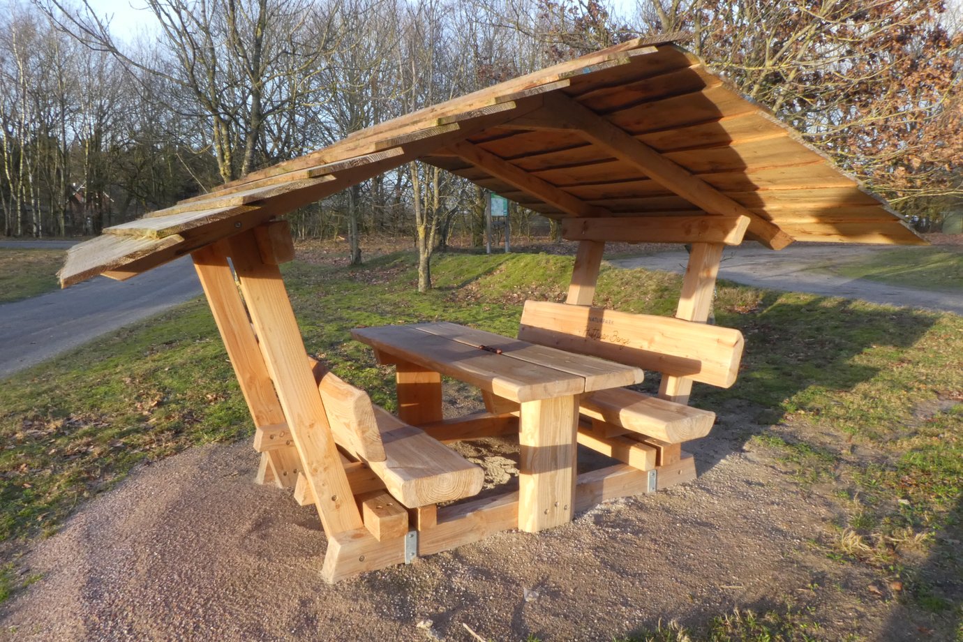 Mit der Aufstellung von Sitzgruppen an zentralen dörflichen Treffpunkten soll darüber hinaus zur Gestaltung und Attraktivierung dörflicher Plätze beigetragen und die Dorfgemeinschaft weiter gestärkt werden. In 12 Gemeinden, die dem Naturpark ihre Bedarfe übermittelt haben, sollen 20 Rastplatzgarnituren und 11 Bänke mit Wiedererkennungswert (Gravur "Naturpark Hüttener Berge" in den Rückenlehnen der Bänke) aufgestellt werden.