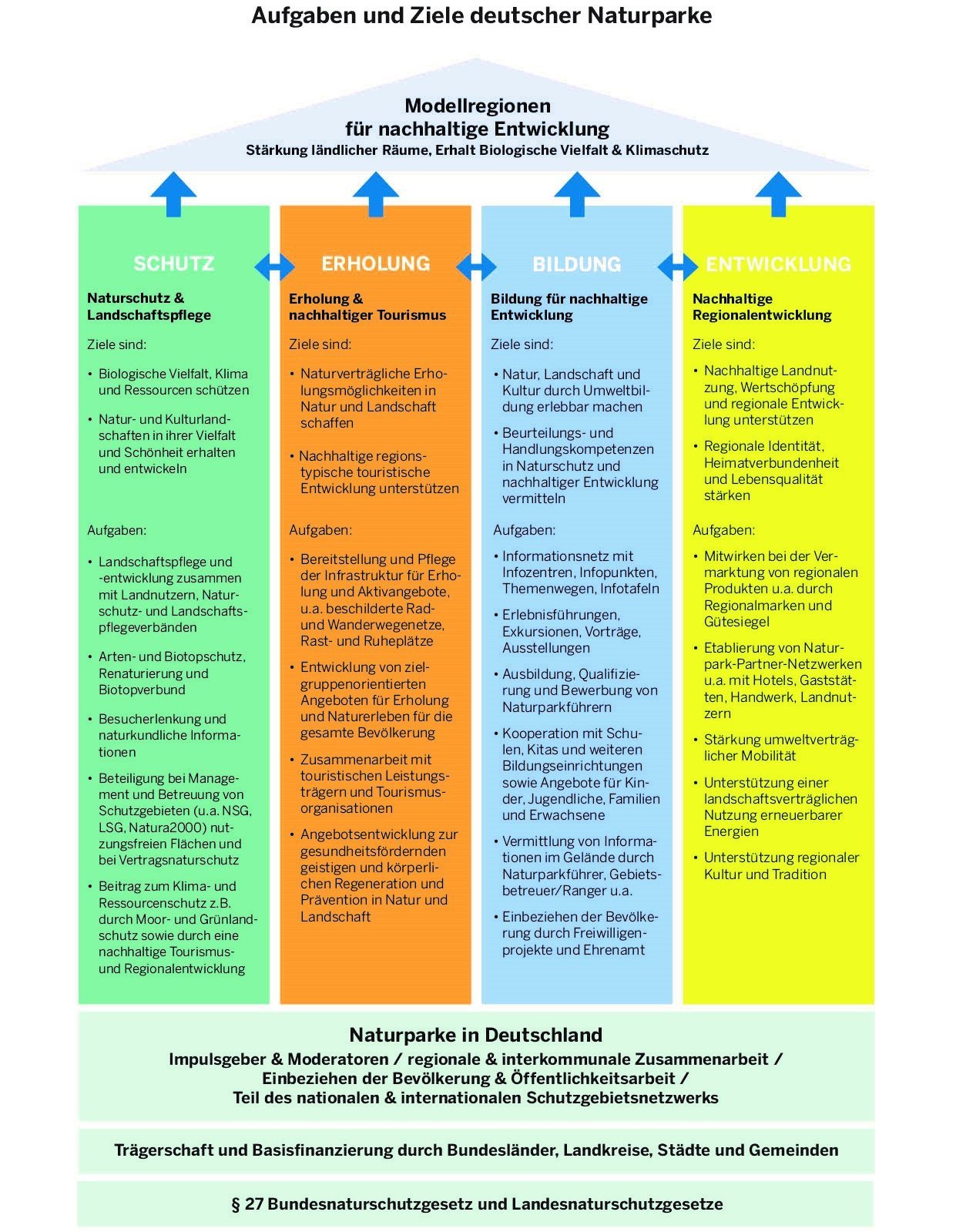 Naturparke haben vier grundlegende Aufgabenbereiche: