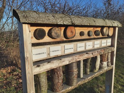 - Baumpuzzle: Hier können Schüler verschiedene Baumarten wie Eberesche, Hainbuche und Rotbuche kennenlernen. Durch das Ertasten und Vergleichen von Rinde, Kernholz und Gewicht wird das Verständnis für unterschiedliche Holzarten gefördert. Auch die Jahrringe und ihre Bedeutung können anschaulich untersucht werden.