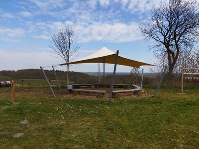 Um wetterunabhängige Veranstaltungen zu ermöglichen, wurde ein großes Wetterschutzsegel errichtet. Es dient als Schutz vor Sonne und Regen und macht den Lernort auch bei wechselhaftem und sehr heißem Wetter nutzbar. Im Winter wird das Segel zum Schutz vor Witterung abgebaut und im Frühjahr von den Mitarbeitenden des Naturparks wieder installiert.