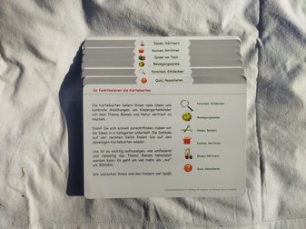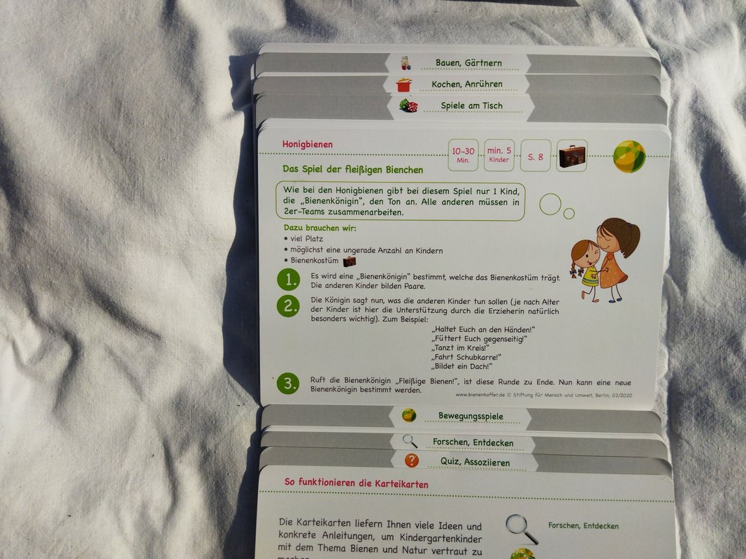 Die beigefügten Karteikarten sind in sieben Rubriken unterteilt, die von Forschen und Entdecken über Bewegungsspiele bis hin zu Malen und Basteln reichen. Diese Vielfalt an Aktivitäten ermöglicht es, den Kindern auf unterschiedliche Weise Zugang zum Thema Bienen zu bieten und sie aktiv einzubinden. Selbst bei schlechtem Wetter gibt es genügend Ideen, um die Neugier der Kinder zu wecken und ihr Interesse an der Natur zu fördern.