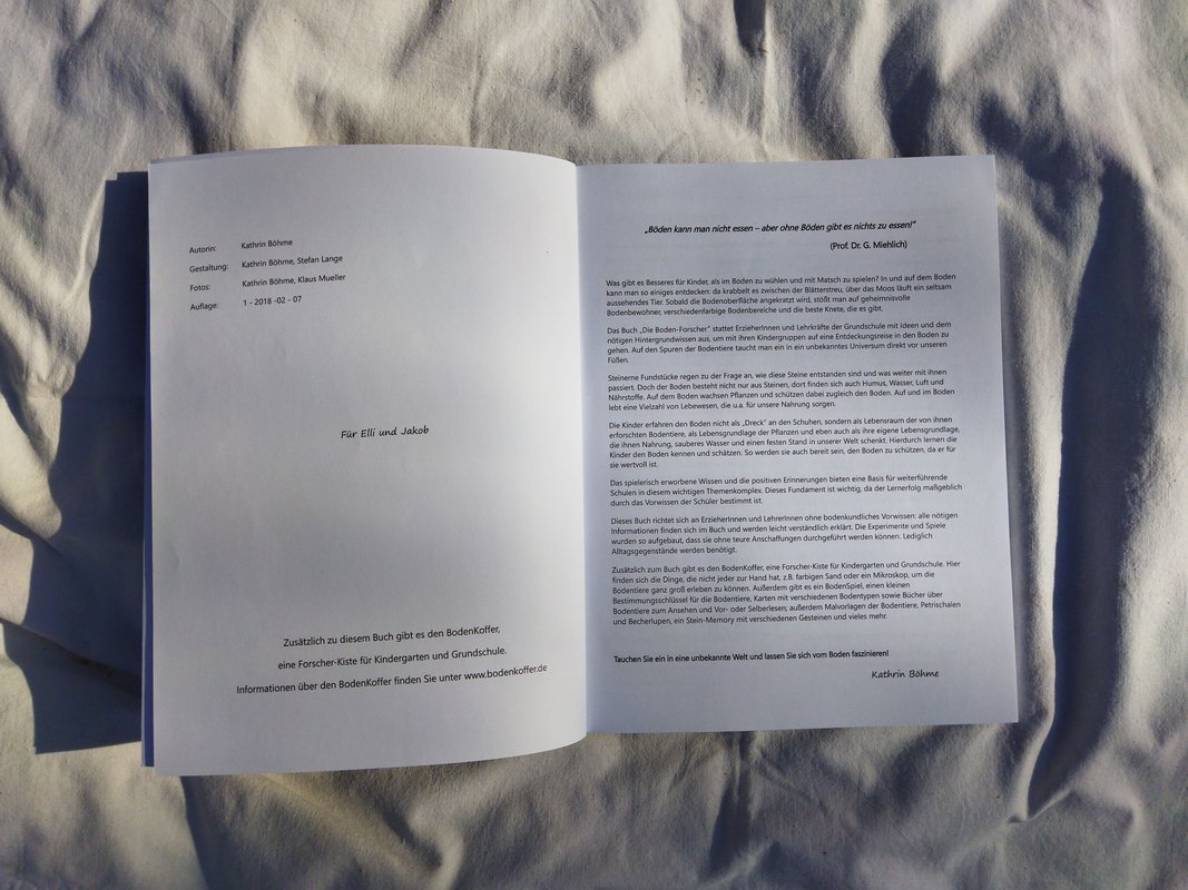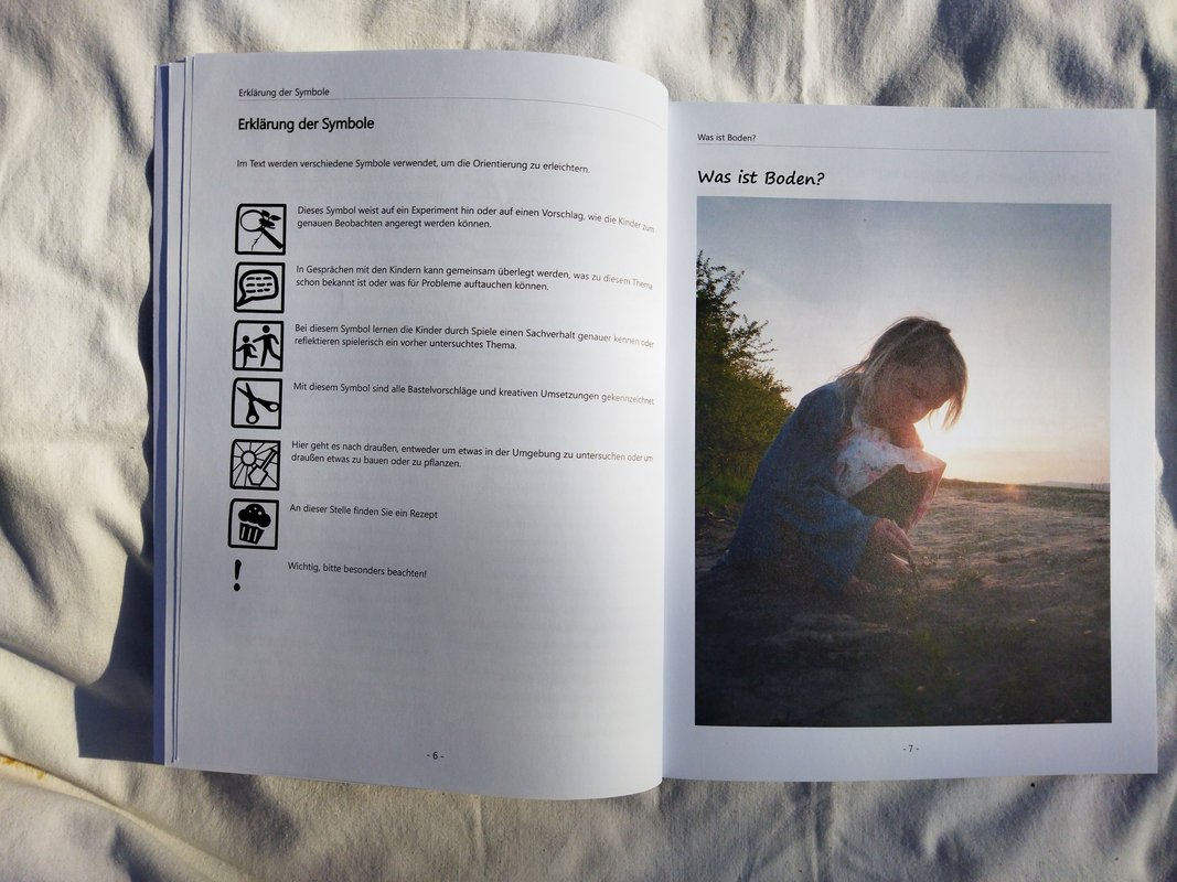 Das Herzstück des Bodenkoffers ist das Forscher-Buch. Es bietet pädagogischen Fachkräften Hintergrundwissen und interessante Fakten über den Boden, um sich schnell in das Thema einzuarbeiten. Zudem enthält es detaillierte Beschreibungen von Praxisideen für den Kindergarten- und Schulalltag, um den Kindern die Zusammenhänge zwischen dem Ökosystem Boden und ihrem Alltag zu erklären.