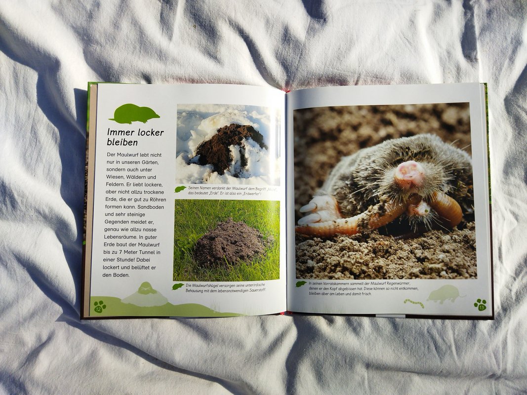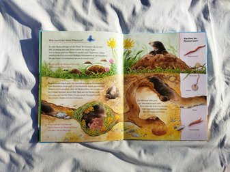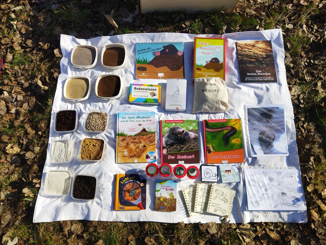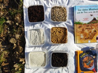 Bilderbücher und Spiele ergänzen den Koffer und erleichtern den Einstieg in das Thema. Sie unterstützen den Aufbau von Grundwissen und bieten weitere Möglichkeiten, sich mit dem Boden und den Bodenlebewesen auseinanderzusetzen. Das Brettspiel "Haben Maulwürfe Augen?" bezieht sich auf heimische Lebewesen und fördert das Verständnis der Kinder für die Lebensweisen dieser Tiere im Zusammenhang mit dem Ökosystem Boden.